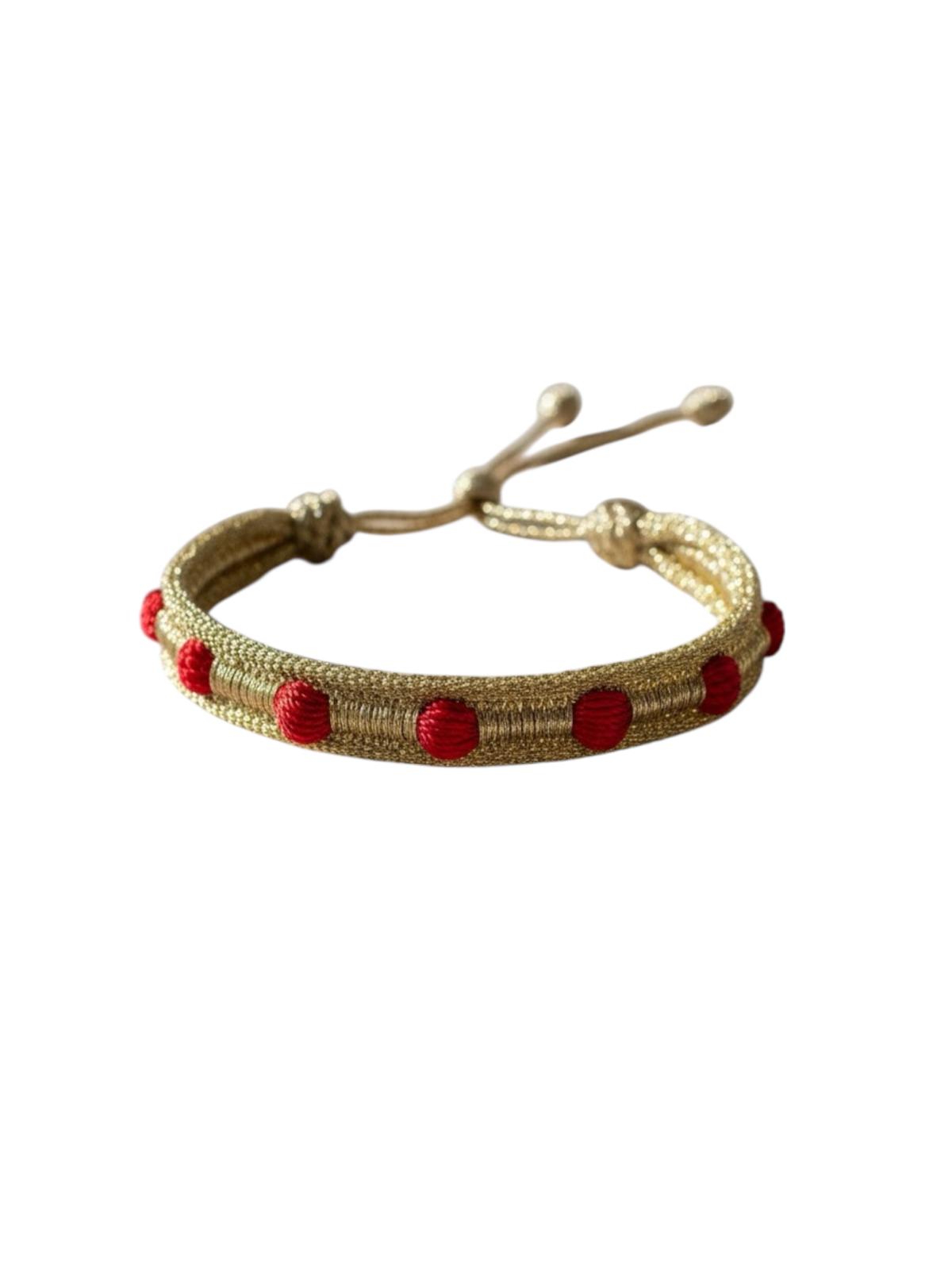Bracelet en Passementerie Or et Boule Rouge