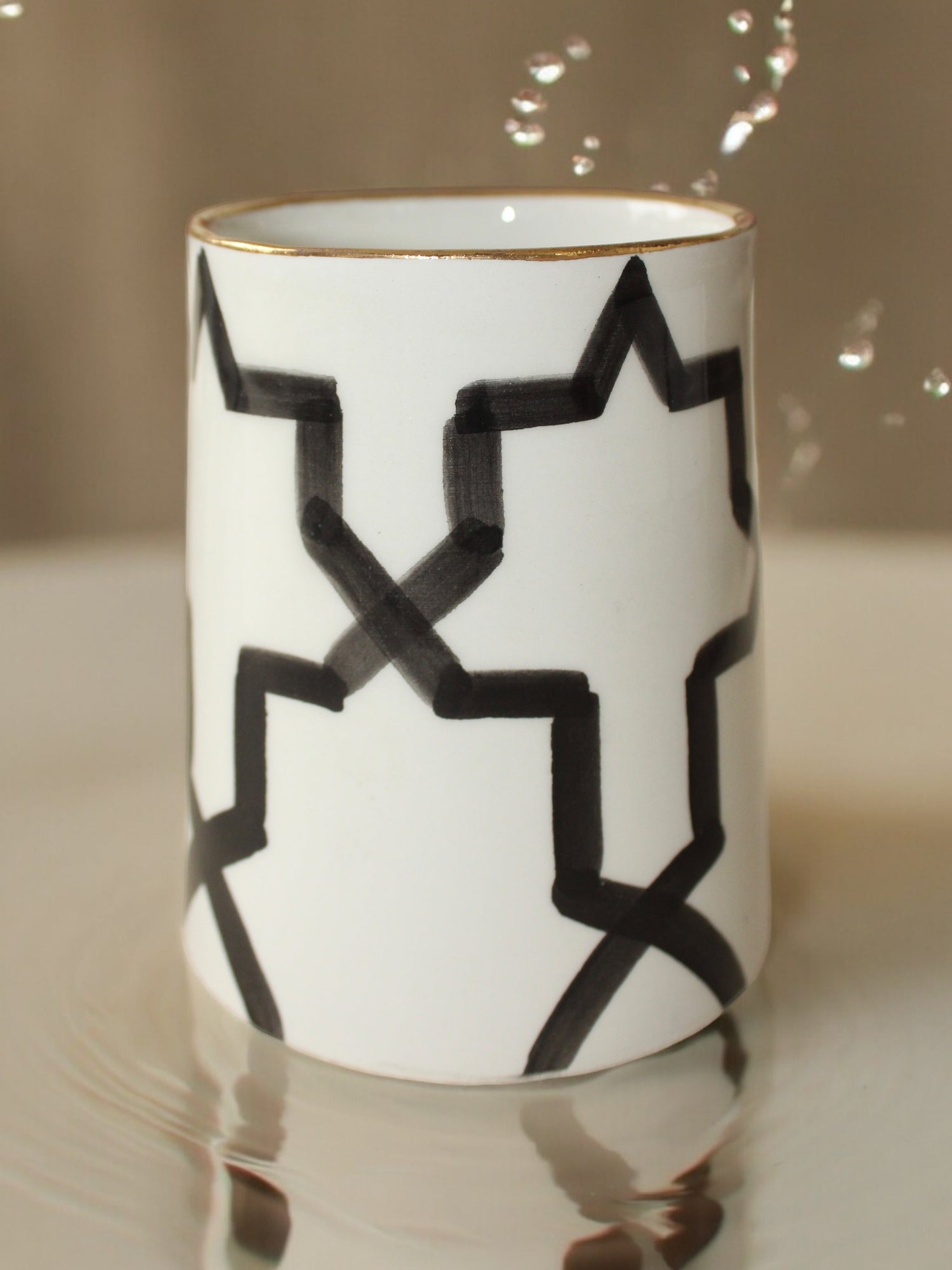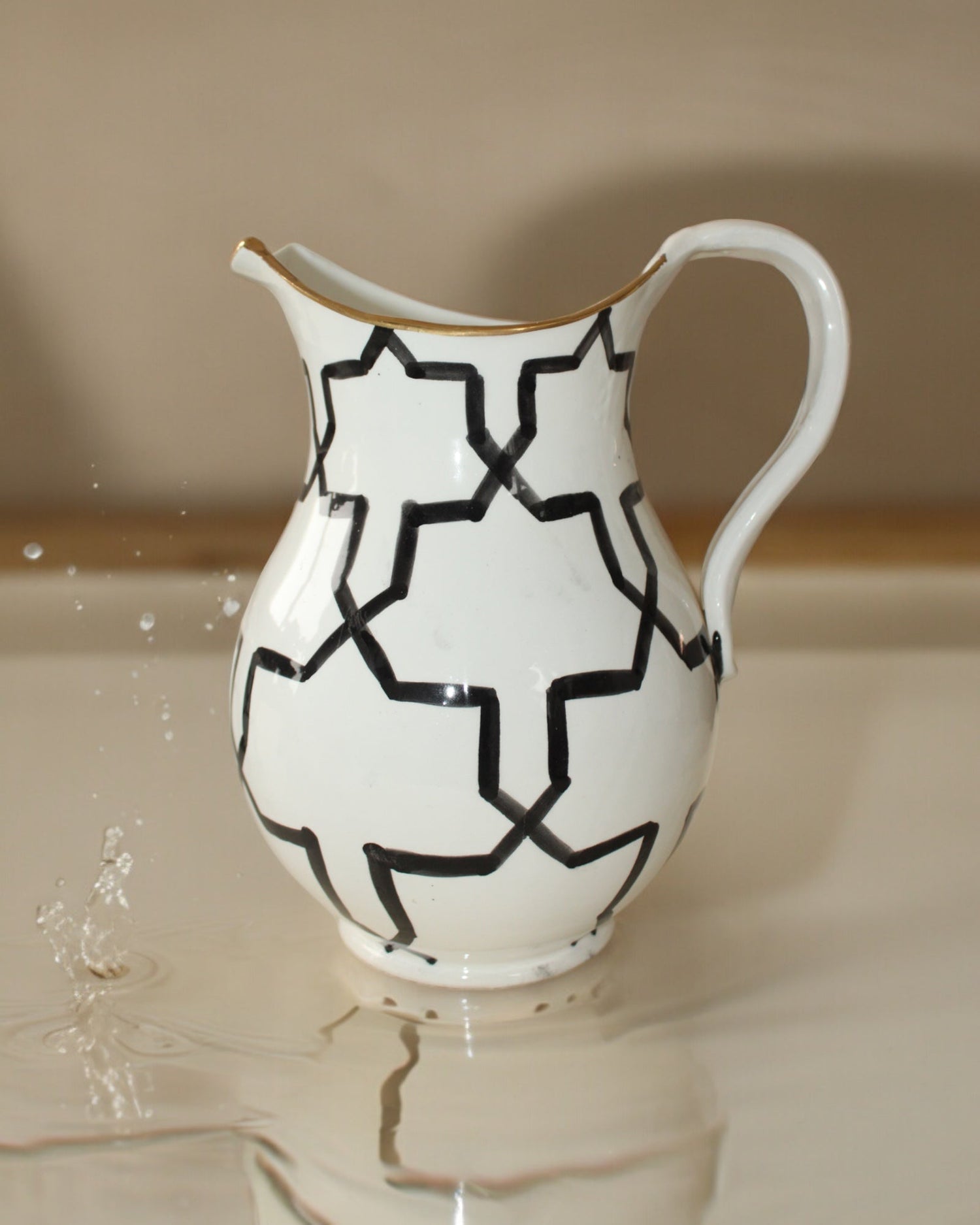 Découvrez notre somptueux service à eau Gold, composé d'une élégante carafe en céramique et de quatre mugs assortis , chacun orné de motifs traditionnels marocains et d'un liseré en or 12 carats . Fabriqué à la main par des artisans passionnés, ce service incarne l'alliance parfaite entre savoir-faire artisanal et raffinement moderne. La carafe et les mugs, avec leurs détails dorés et leurs motifs délicats, apportent une touche de luxe et d'élégance à votre table. Parfait pour sublimer vos moments de convivialité, ce service à eau unique rehausse votre décoration intérieure tout en célébrant l'authenticité et la beauté du design marocain traditionnel.
