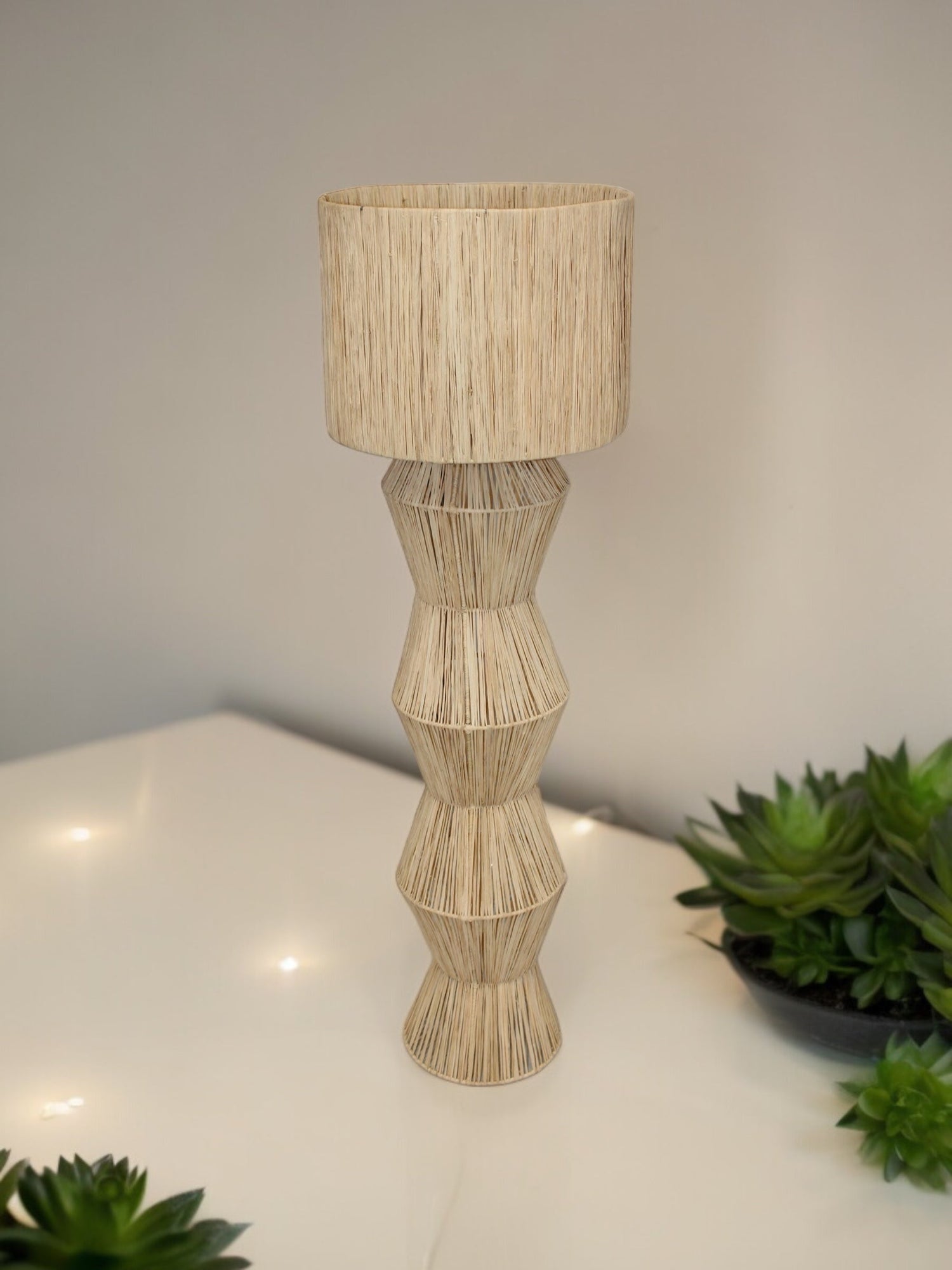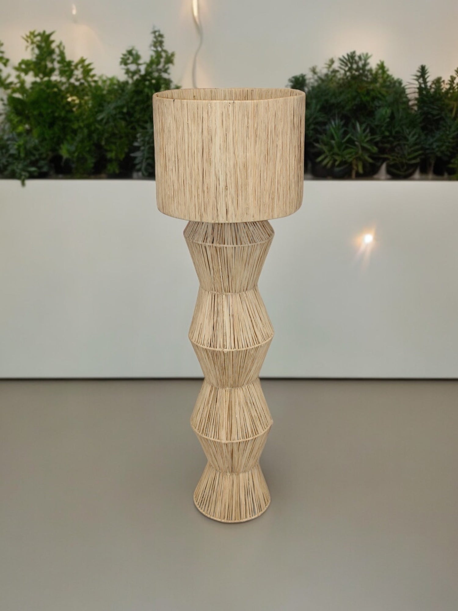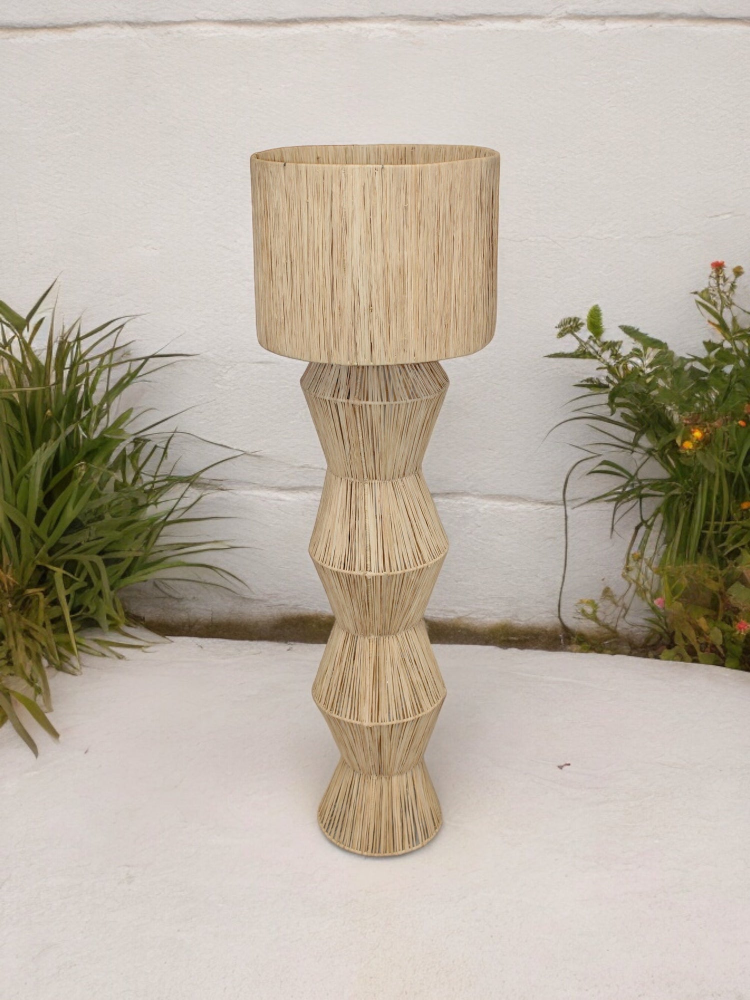 Majestueuse et raffinée, la lampe Abojorad est une véritable œuvre d’art en raphia. Entièrement tissée à la main par nos artisans au Maroc, elle séduit par sa hauteur impressionnante de 1m40 et par son design sculptural, à la fois contemporain et profondément enraciné dans la tradition.