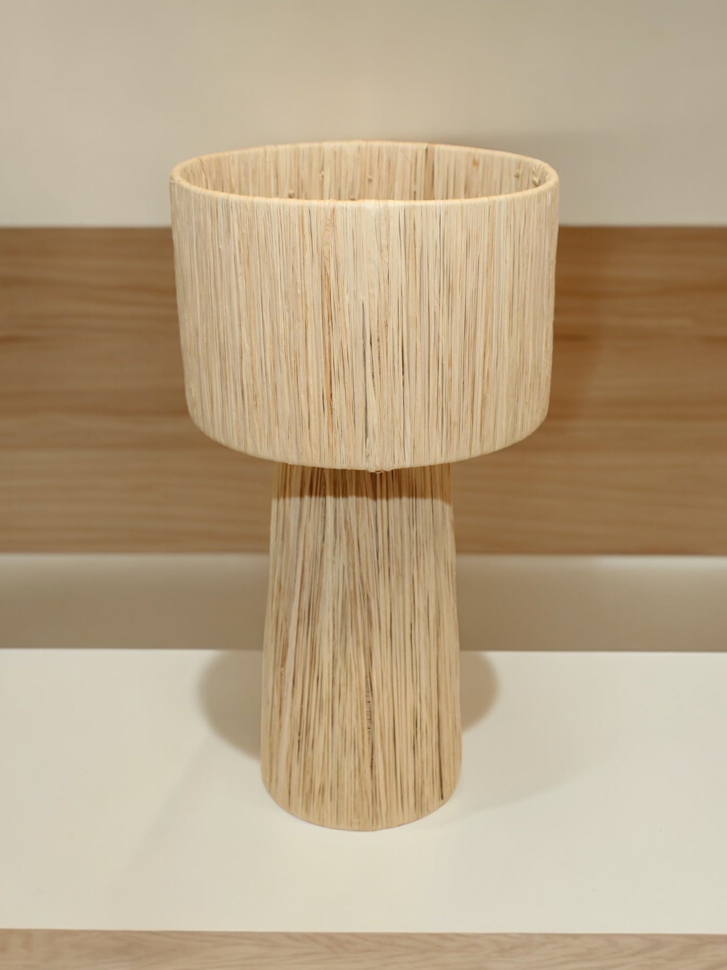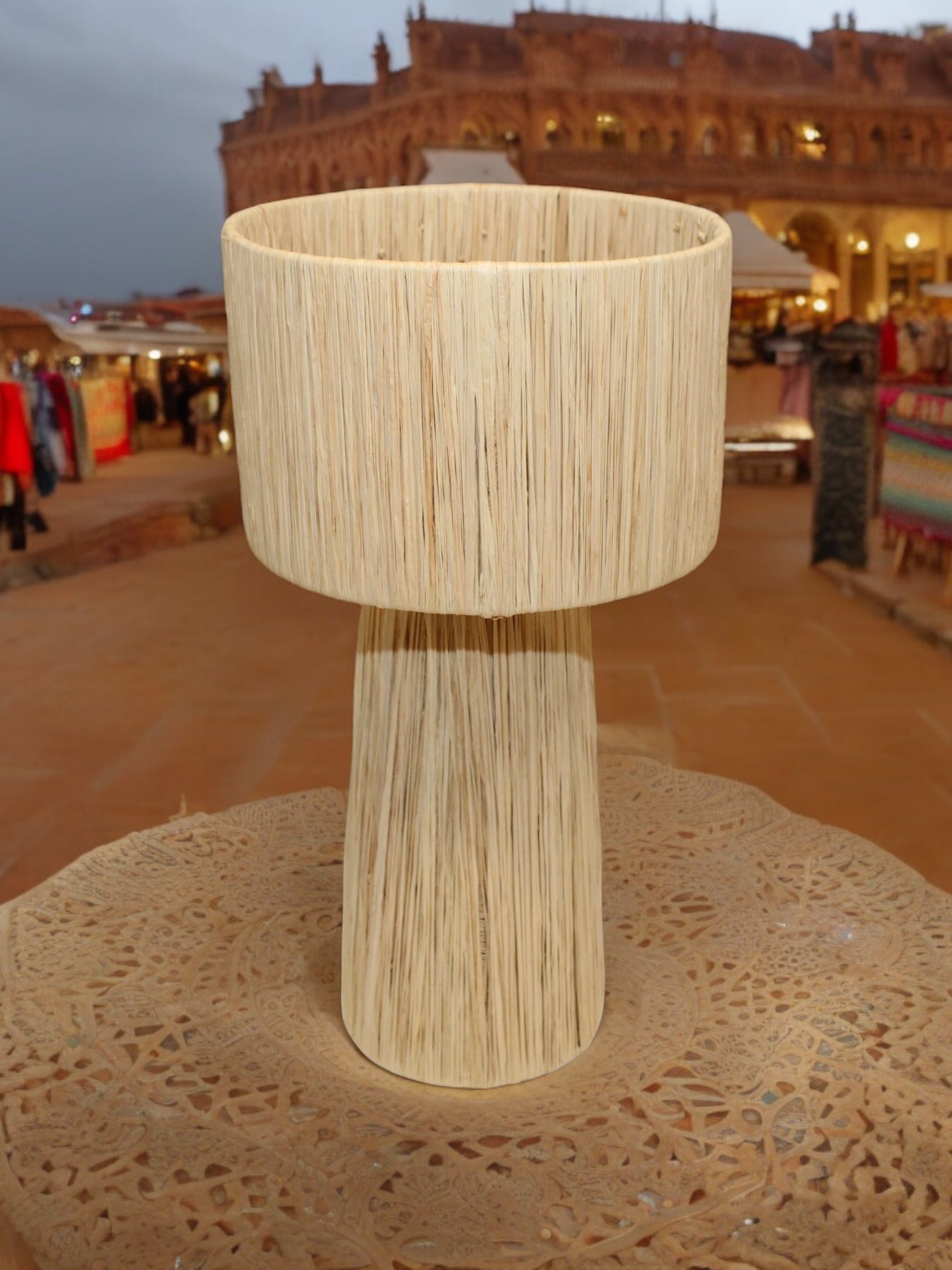 Avec sa silhouette épurée et ses 47 cm de hauteur, la lampe Boho incarne l’élégance décontractée du style bohème. Façonnée à la main au Maroc en raphia naturel, elle diffuse une lumière douce et chaleureuse, idéale pour créer une ambiance paisible dans un salon, une chambre ou un coin lecture.