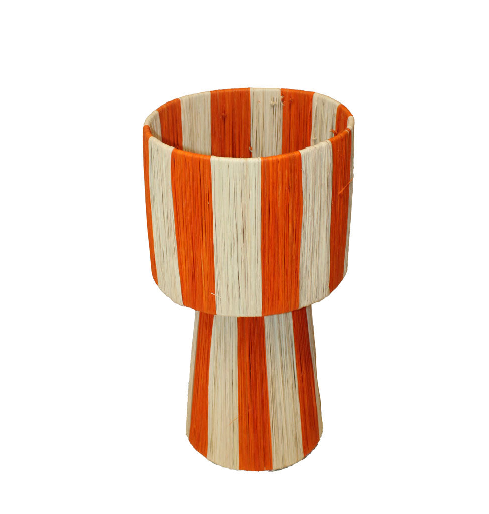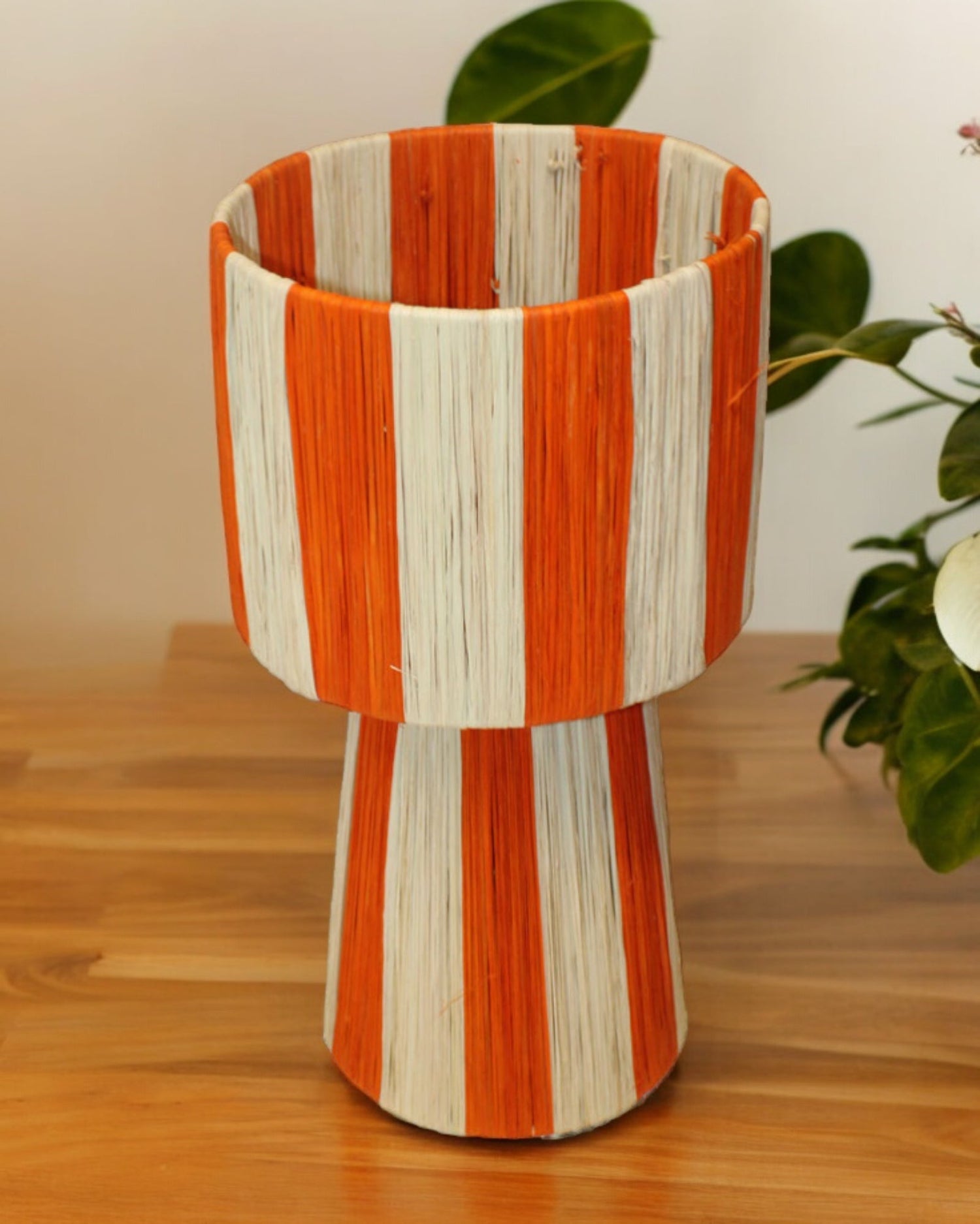 Avec ses 37 cm de hauteur, son tressage ajouré filtre la lumière en douceur, créant une atmosphère chaleureuse et enveloppante. Son accent orangé apporte une personnalité lumineuse, idéale pour sublimer un salon, une chambre ou une entrée à l’esprit bohème ou ethnique.