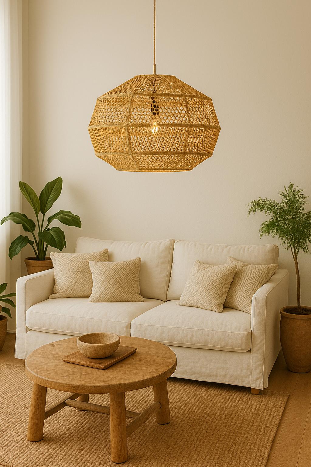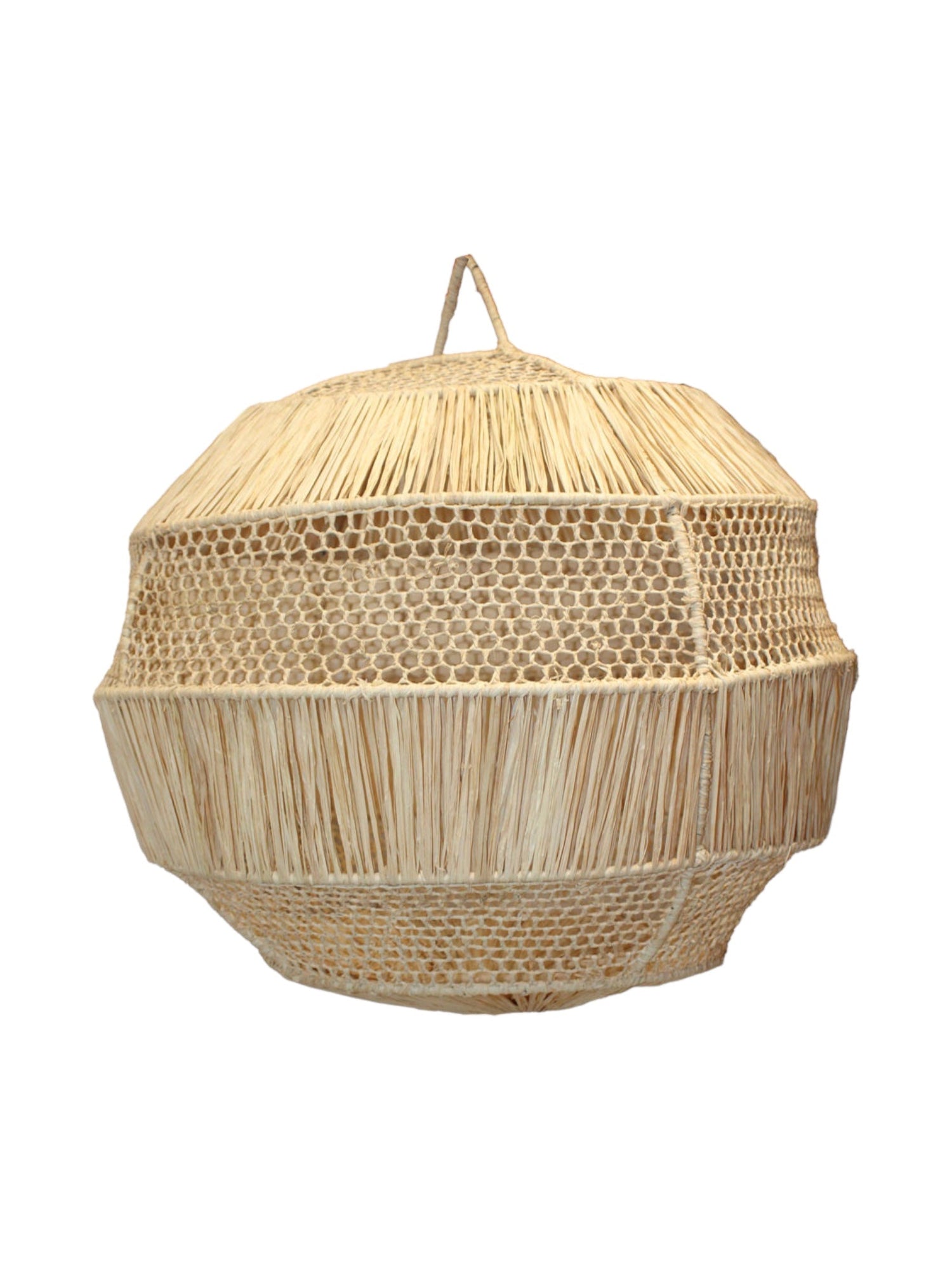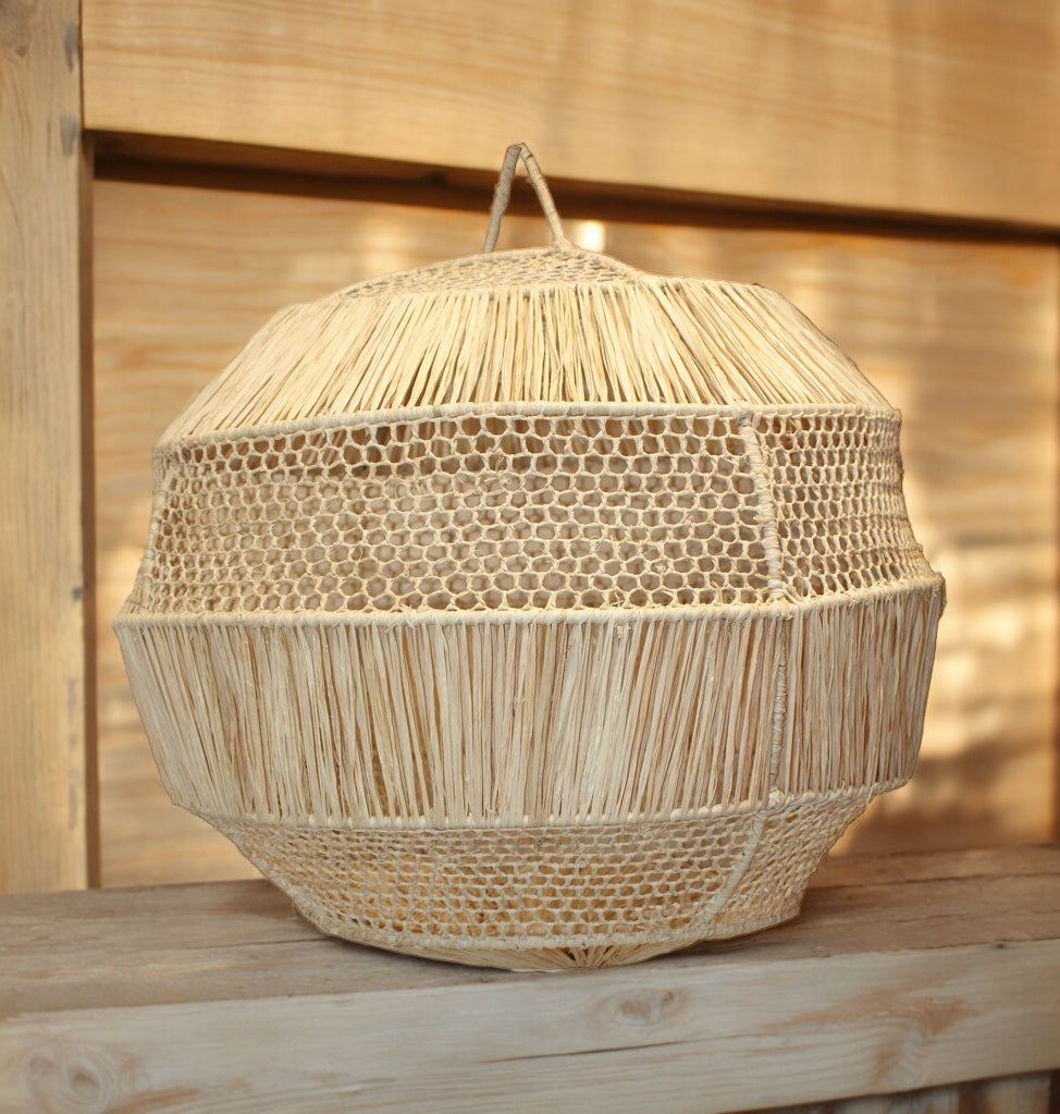 Avec ses 50 cm de diamètre, elle s’impose comme une pièce décorative forte, idéale au-dessus d’une table, dans un salon ou une chambre. Son design aéré et organique met en valeur le savoir-faire traditionnel tout en s’intégrant parfaitement dans des intérieurs modernes, naturels ou méditerranéens.