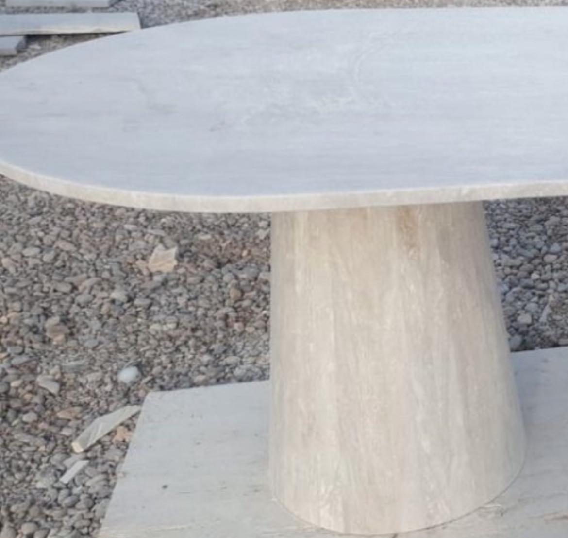 Avec ses lignes pures et son plateau ovale en travertin naturel, la table Elyana incarne la rencontre entre simplicité et élégance. Ses deux pieds cylindriques massifs lui confèrent une allure sobre et équilibrée, idéale pour sublimer un intérieur contemporain, minimaliste ou méditerranéen.