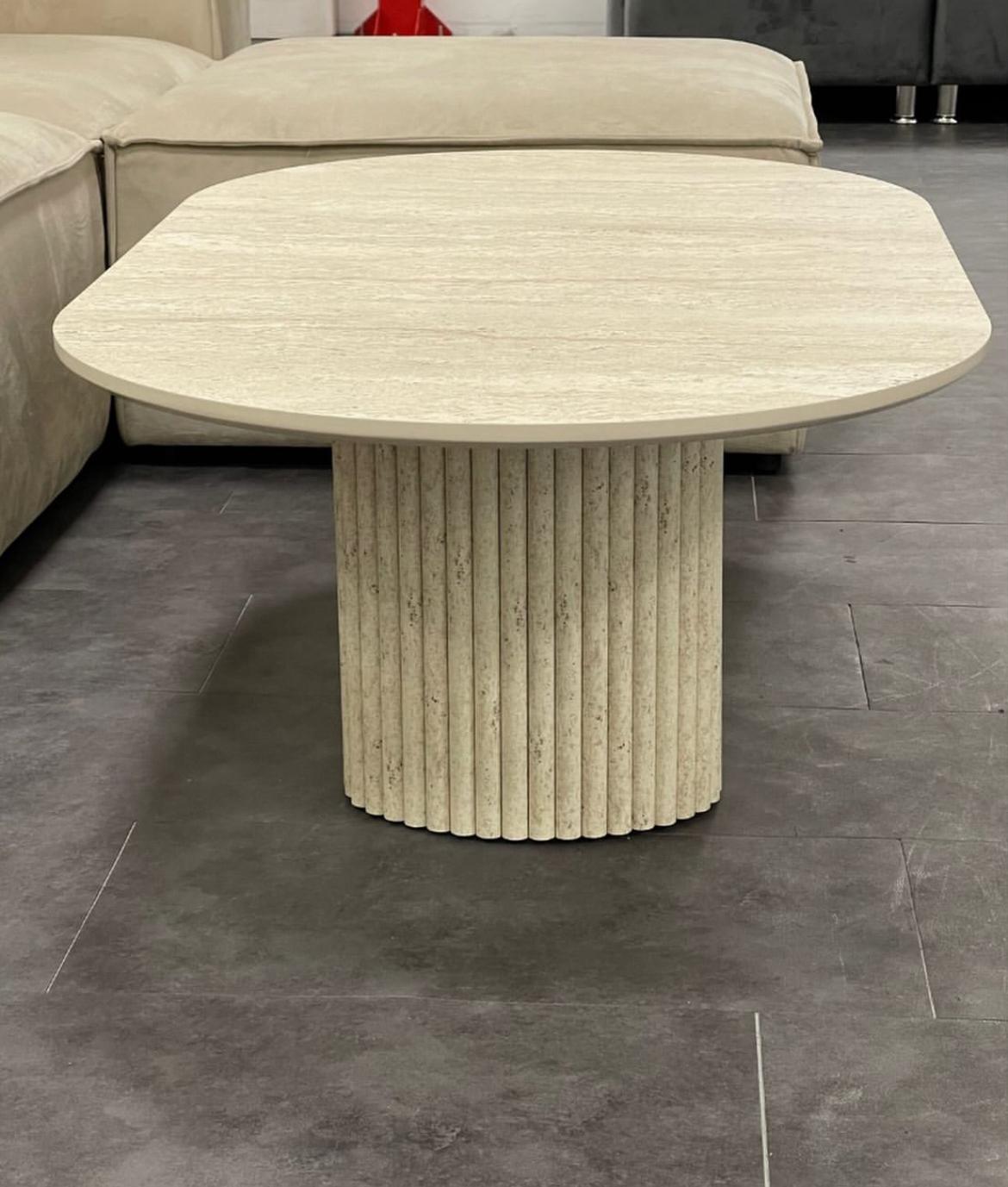 Avec son plateau ovale aux lignes épurées et son pied central strié , Sabbia incarne un design minimaliste, inspiré des formes naturelles sculptées par le temps. Entièrement façonnée à la main au Maroc , cette table célèbre le mariage entre authenticité artisanale et raffinement contemporain .